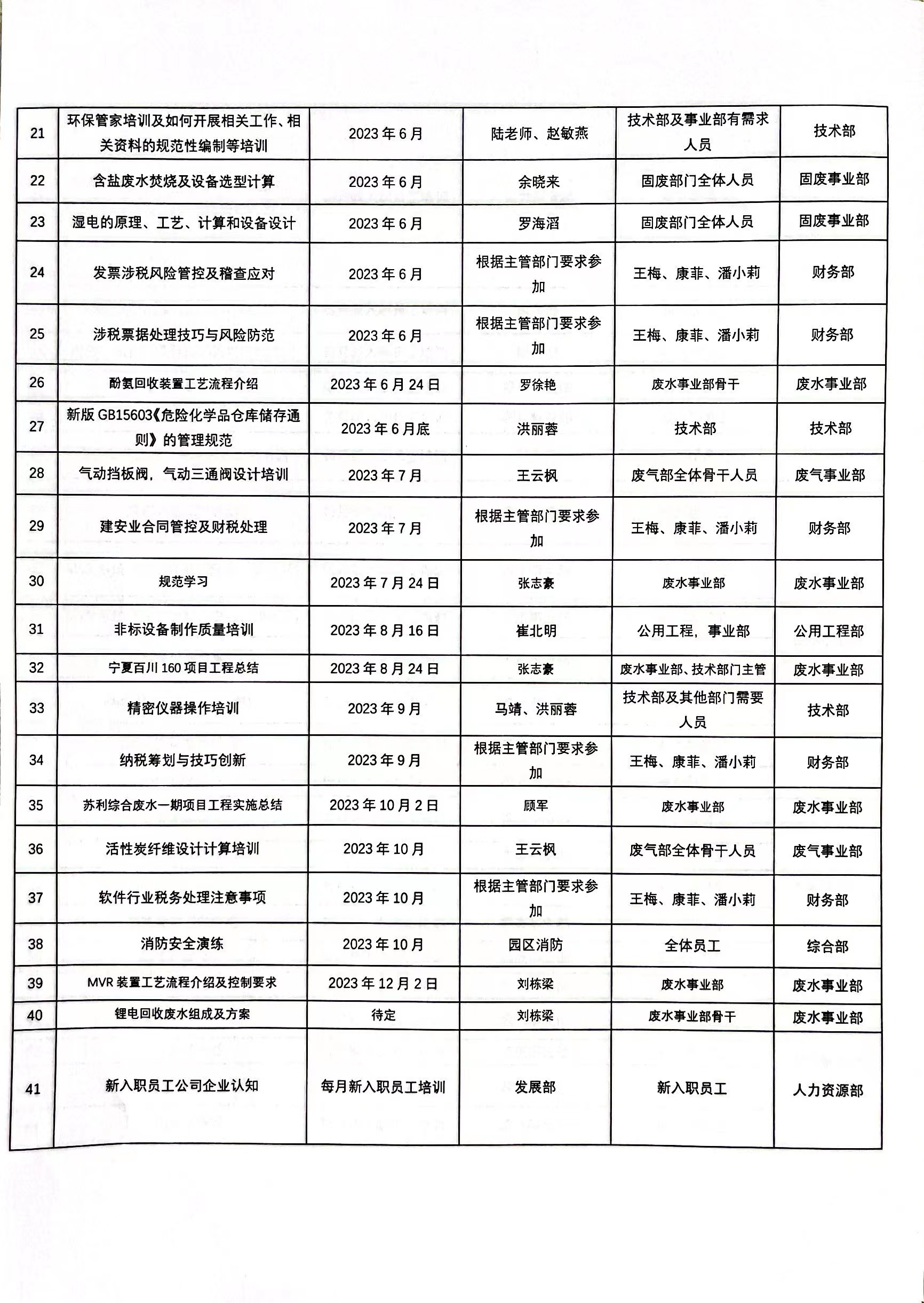 随着研究院各产业板块的不断升级,研究院队伍也在发展壮大,为了增强我院人才队伍建设,保证企业可持续性发展,根据公司2023年的发展目标,为提高整体人员素质,我院于2023年度制定各项培训计划,培训内容包括新员工的岗前培训、业务技能培训、专业知识培训、消防知识等,拟定培训80余场次,参与人员需达百人,覆盖公司全体员工,全面启动培训工程,创建一支高素质,高技能的员工队伍,做好年度员工的培训工作。