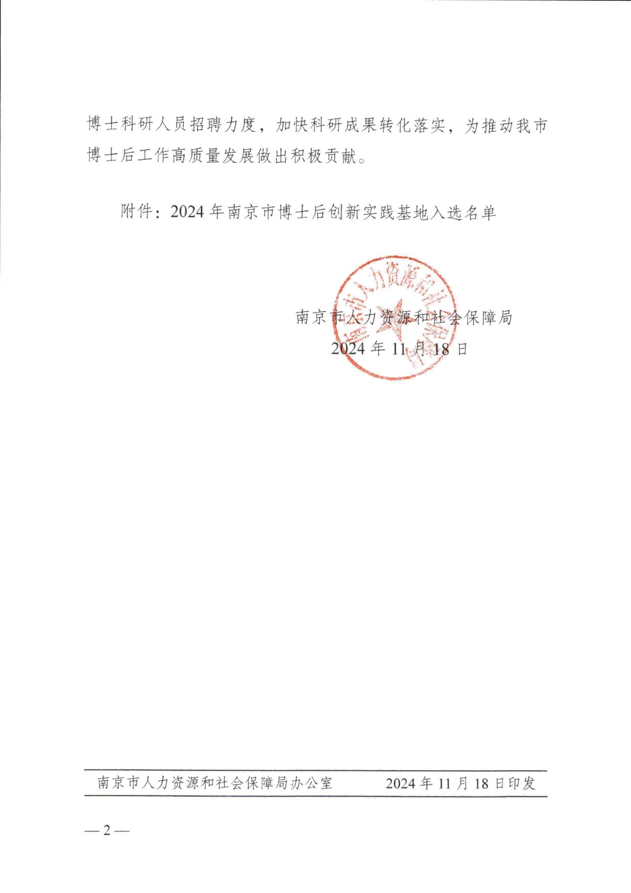 日前,南京市人力资源和社会保障局发布公告,南京市30家单位获批设立博士后创新实践基地,williamhill中文官网名列其中。